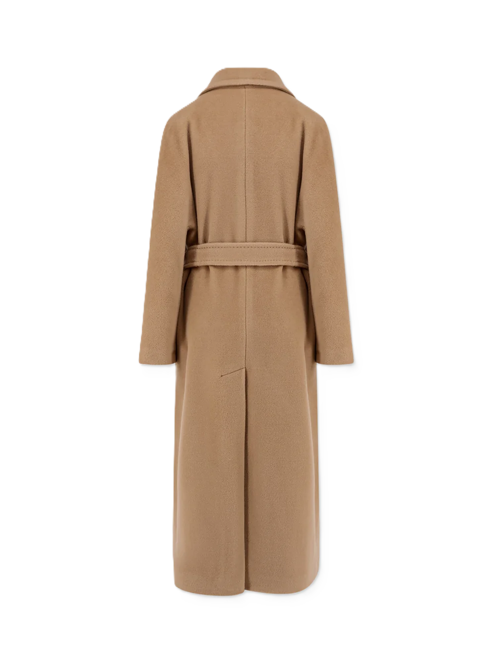 Cappotto Charlize. Tessuto in lana, scollo con reverse a lancia. Chiusura con cintura in vita rimovibile. Tasche a filo laterali, spacco centrale sul retro