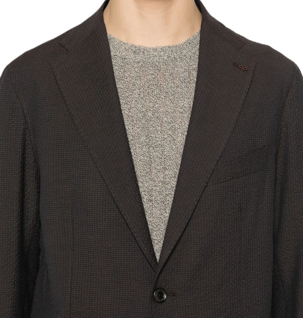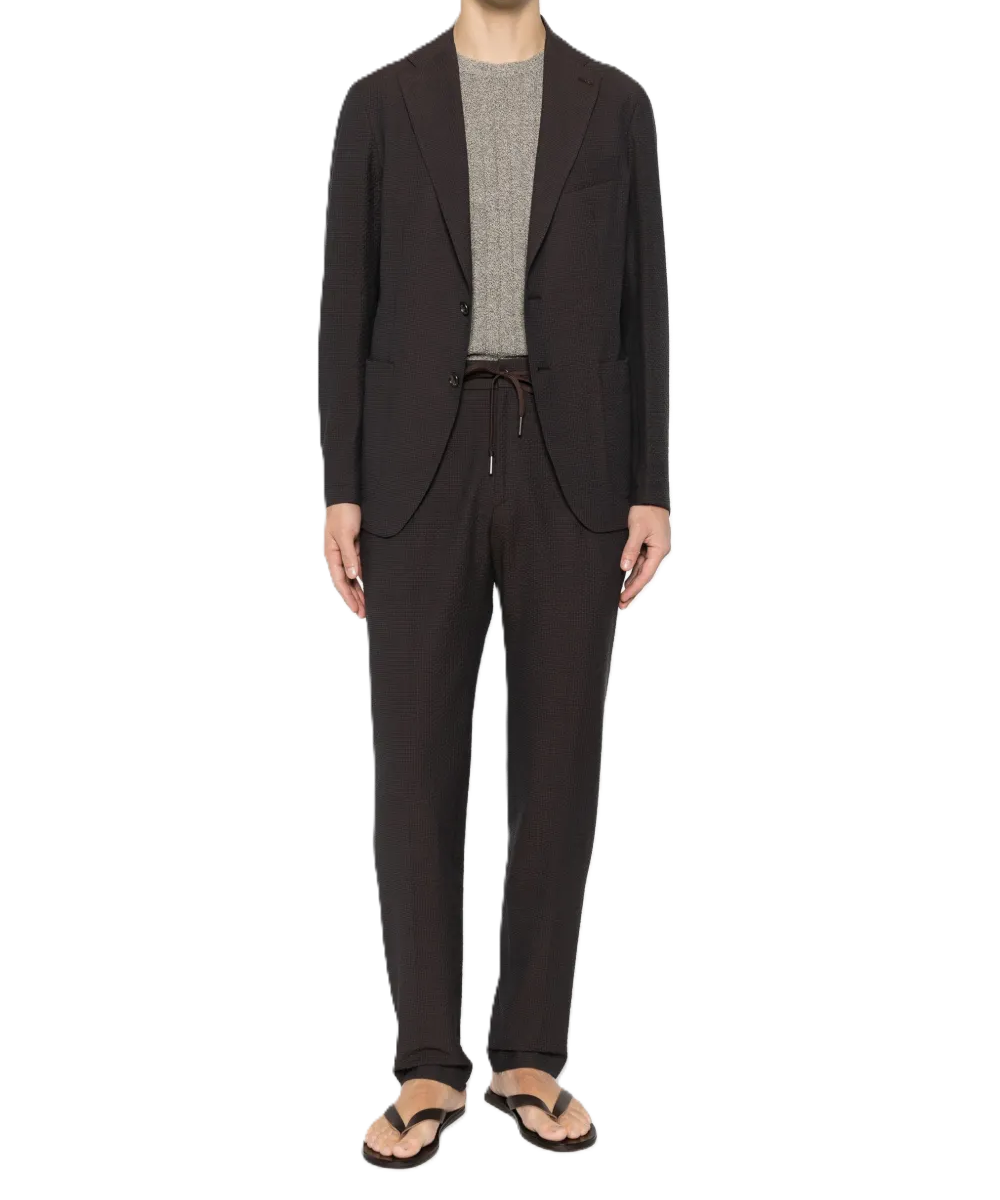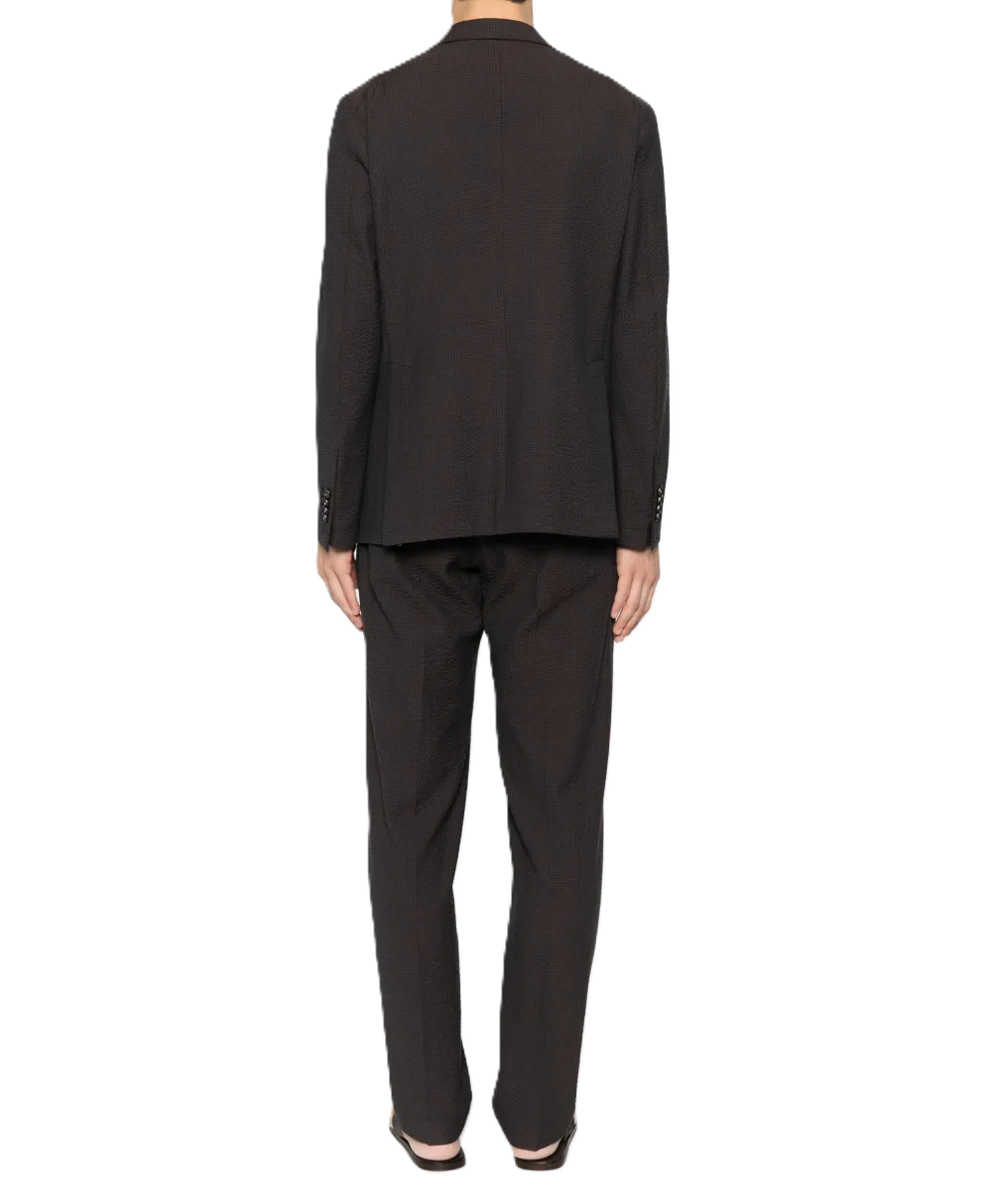 Abito uomo marrone, revers classici, due tasche frontali, chiusura a bottoni, colore marrone