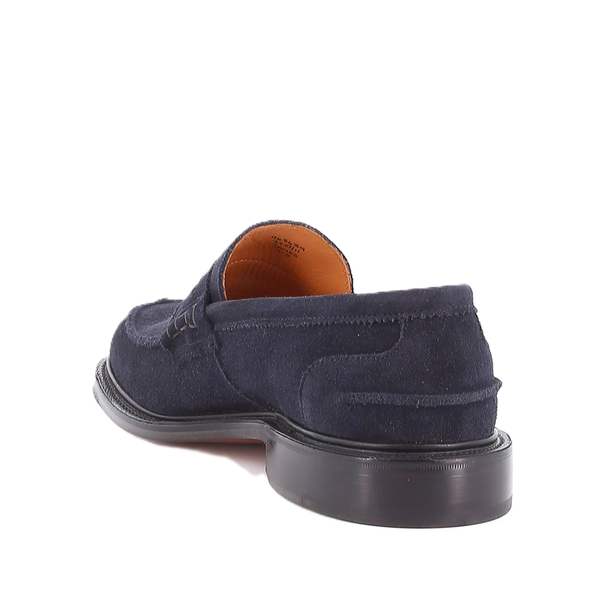 Mocassino Tricker`s James, in pelle scamosciata blu navy, suola in cuoio.