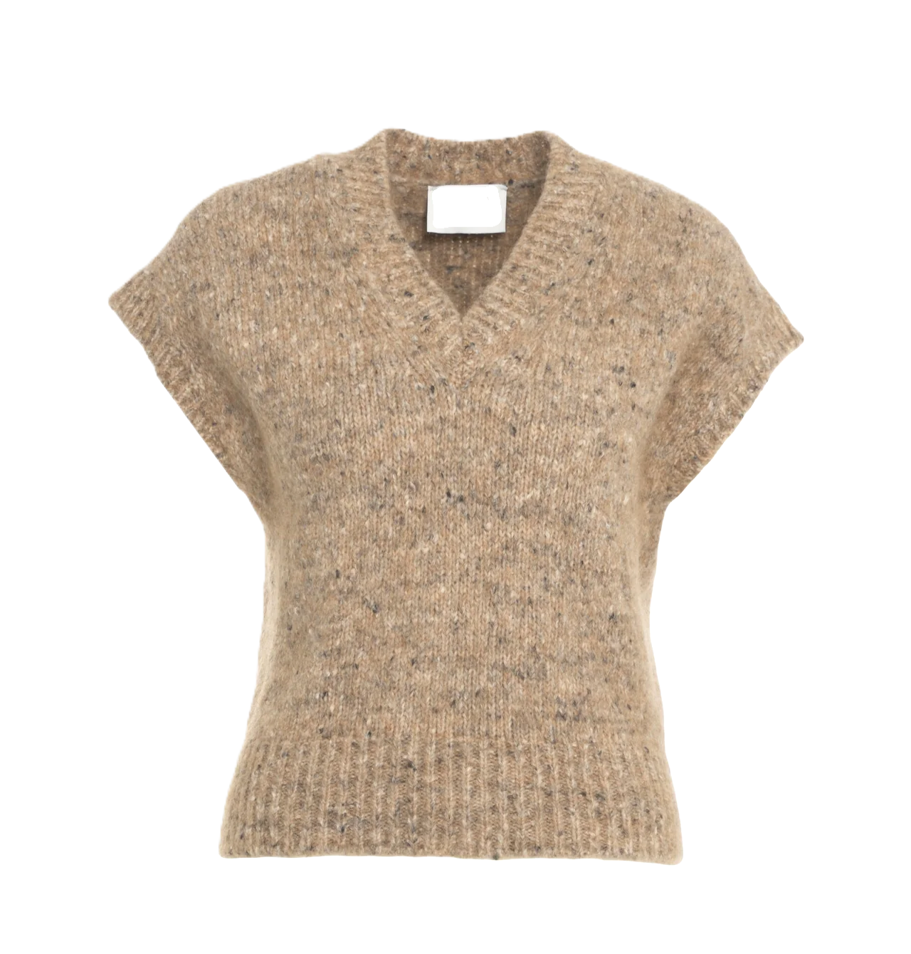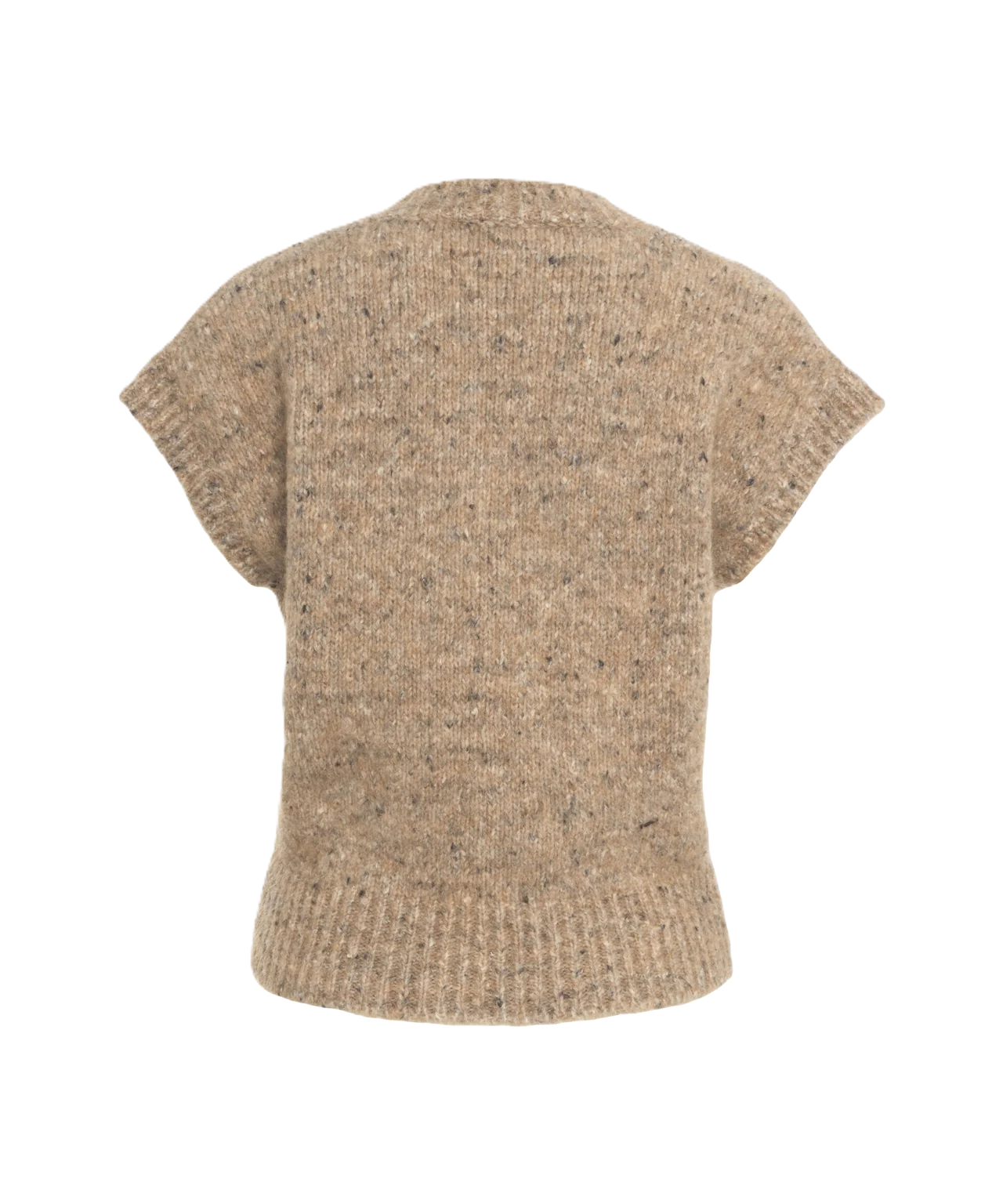 Maglia Gilet a maniche corte, in tessuto a maglia. Scollo a V. Mélange. Orlo a coste
