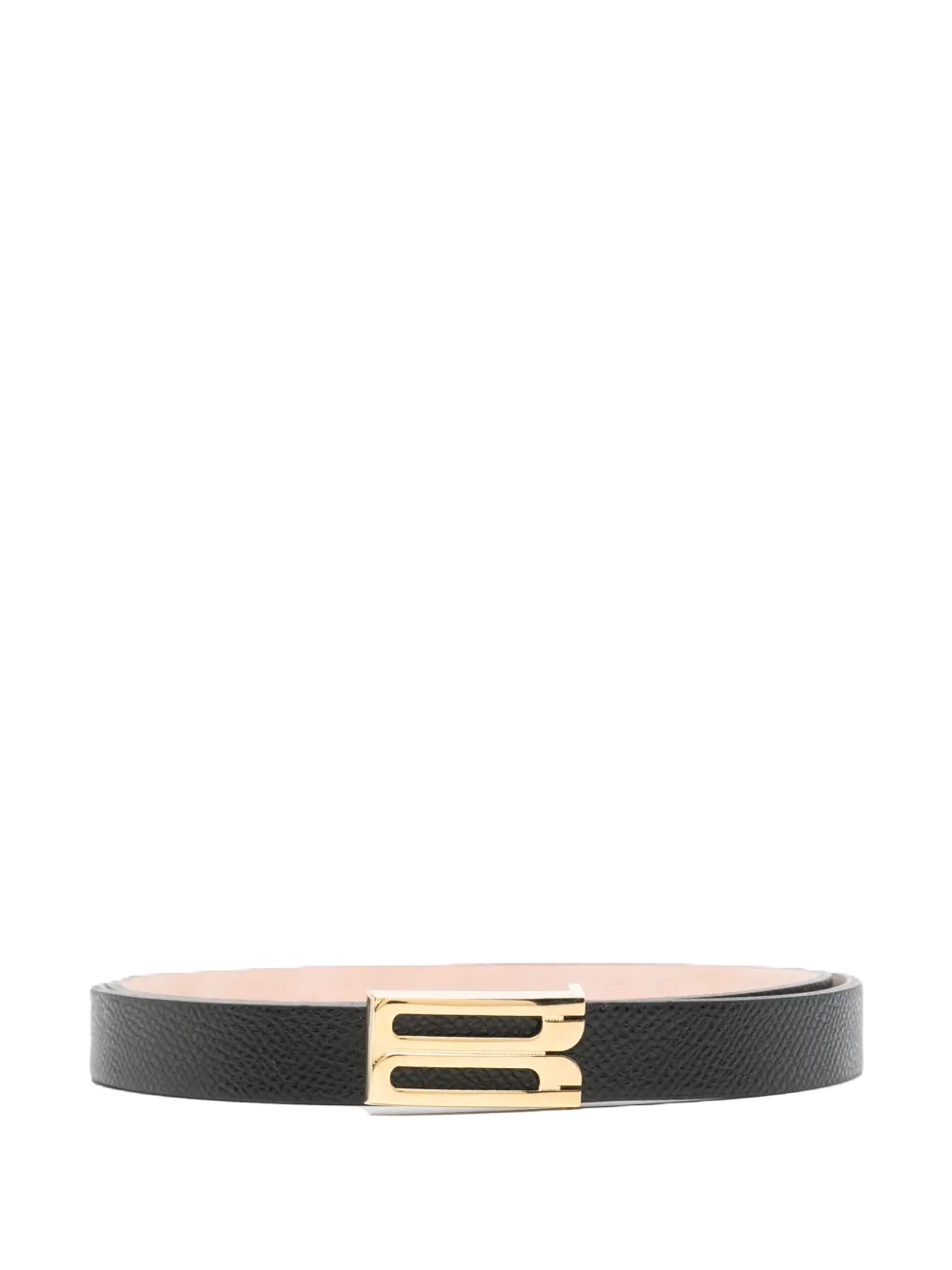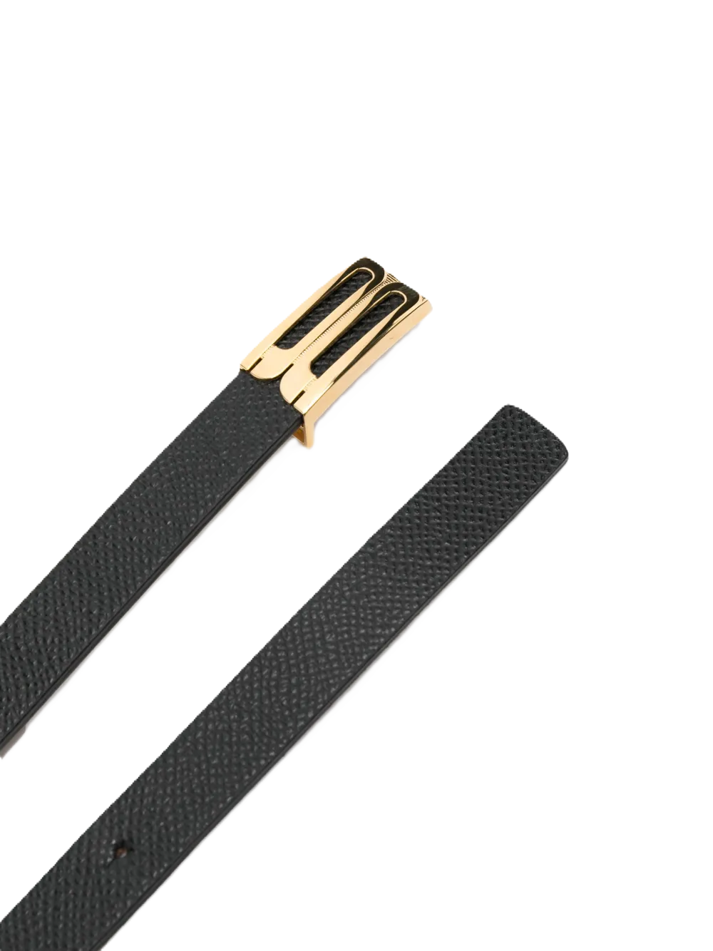 Cintura piccola in pelle nera, fibbia ad ardiglione, design regolabile.