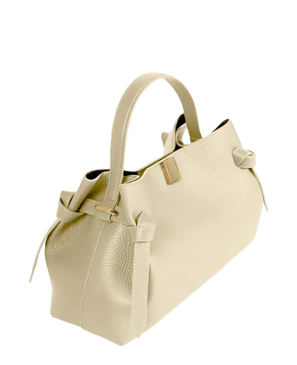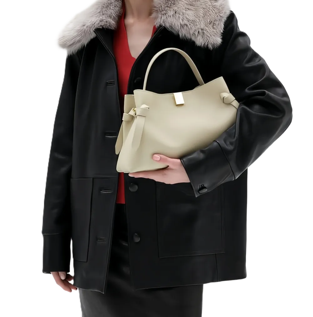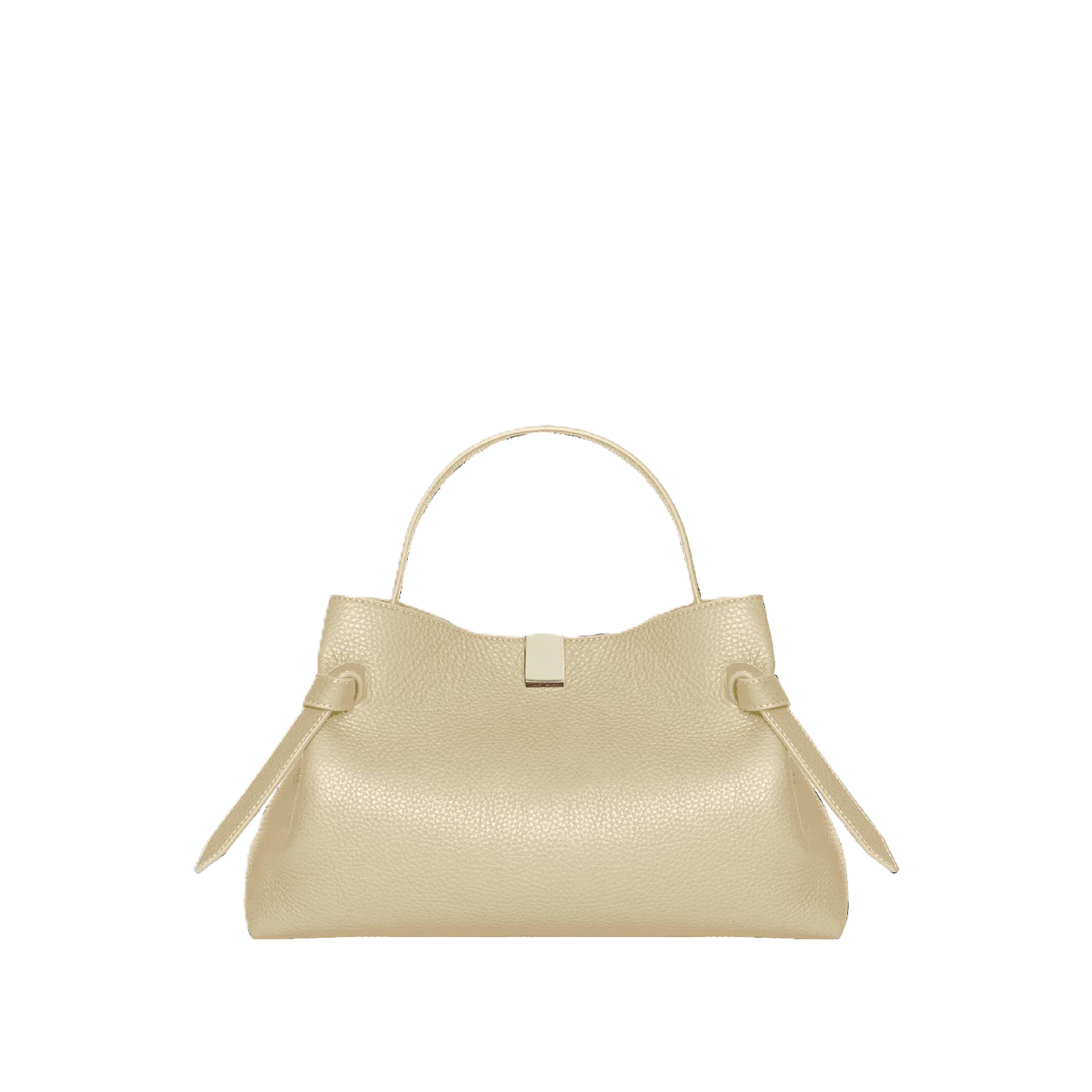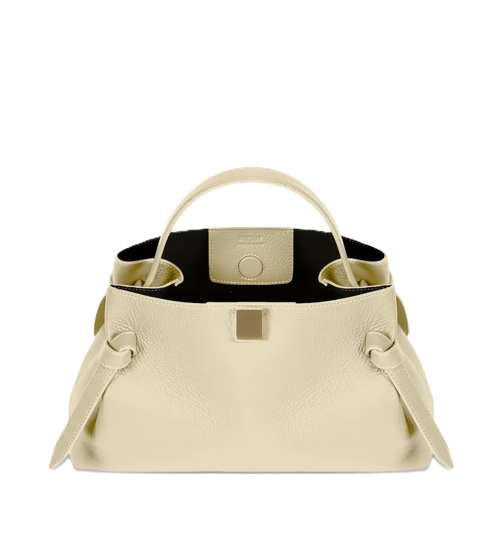 La Mini Gyoza è una borsa scultorea con manico superiore realizzata in pregiata pelle italiana. Adatta per gli oggetti essenziali quotidiani: telefono, chiavi, trucco