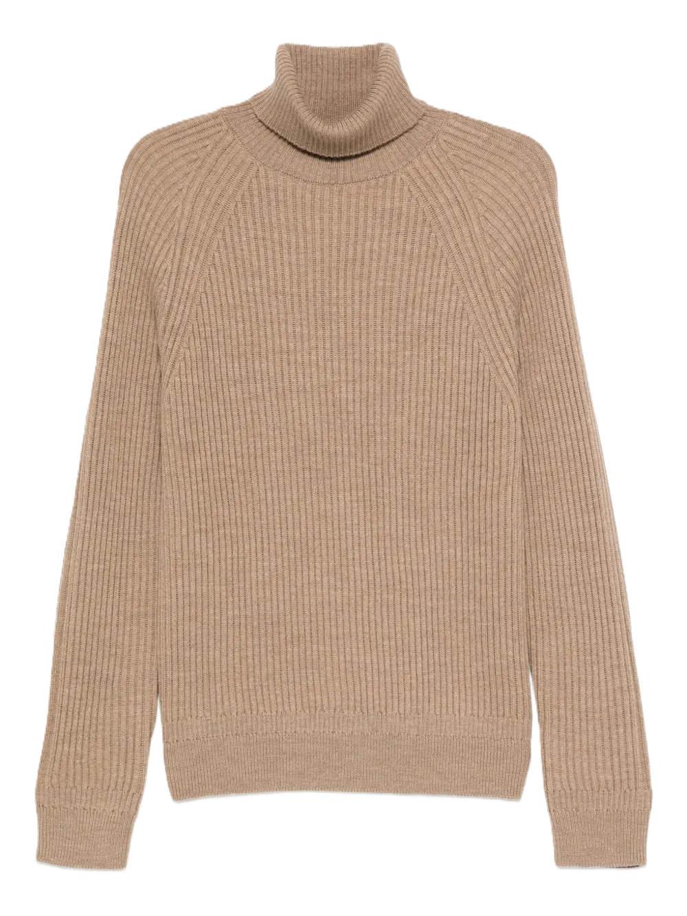 Zanone Maglione a coste con collo alto beige, lavorazione in maglia a coste, maniche raglan, maniche lunghe, orlo dritto