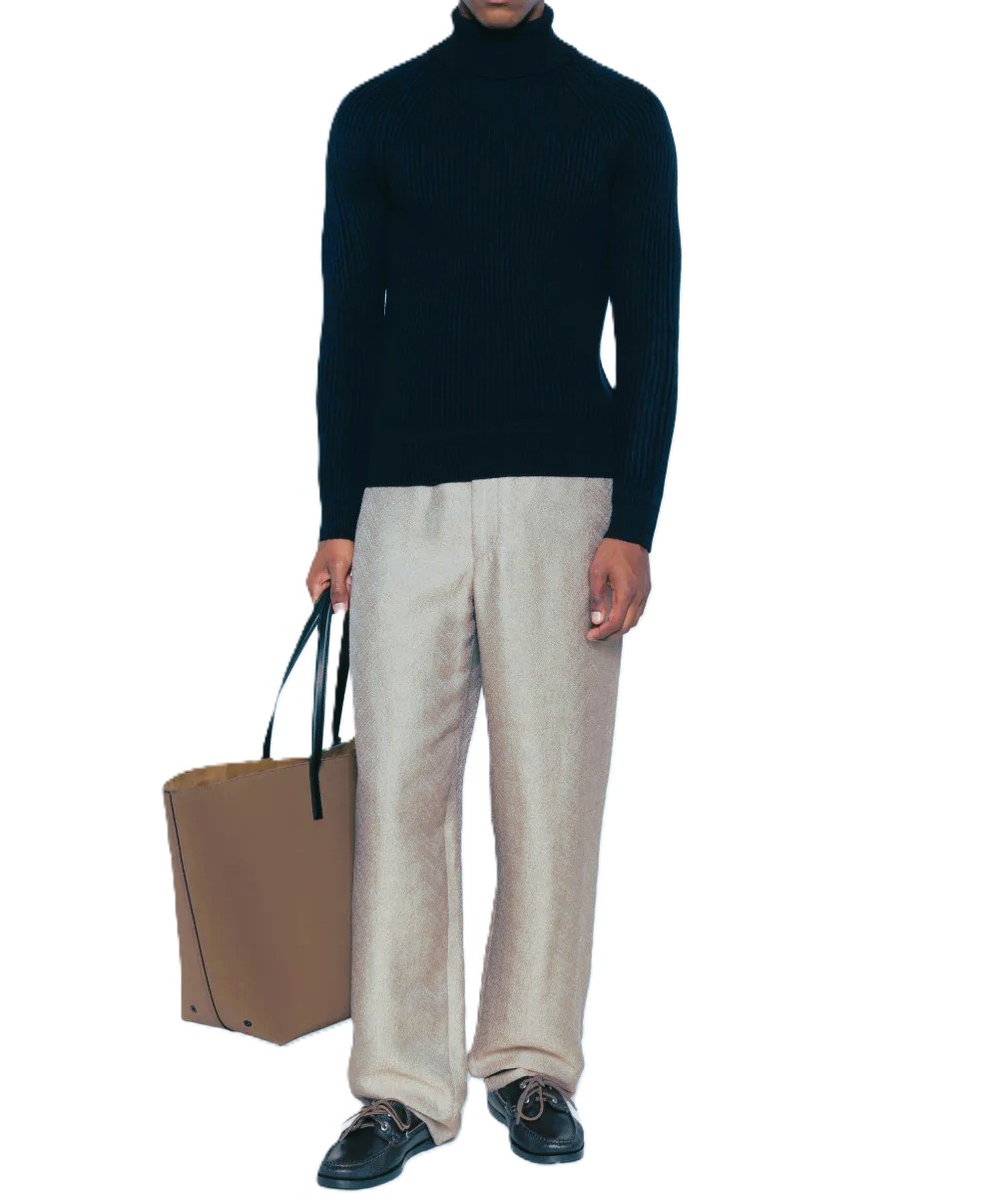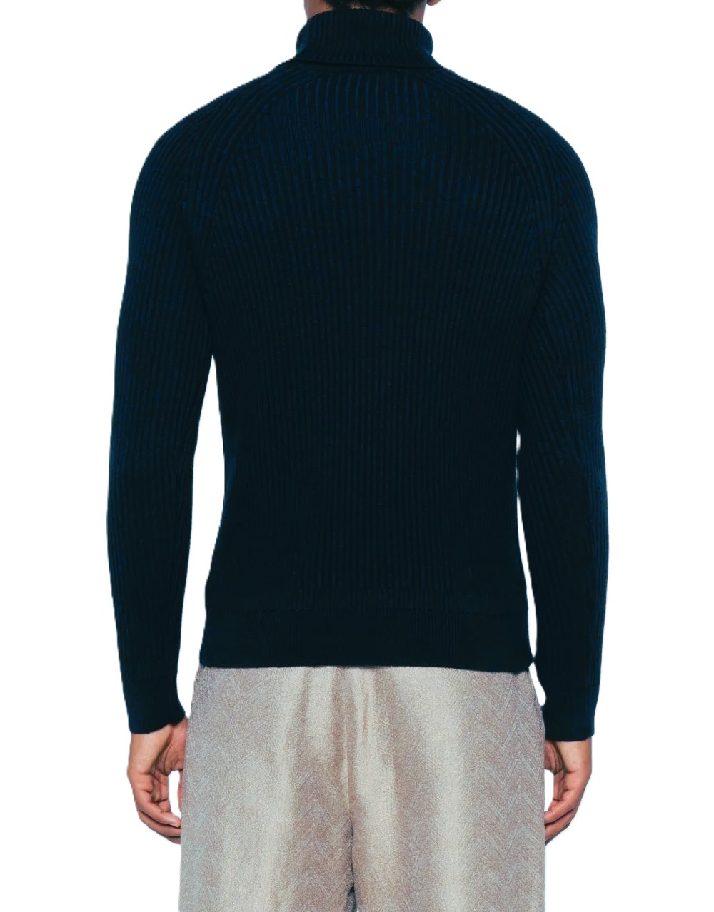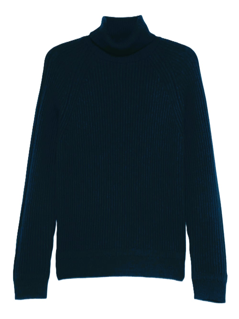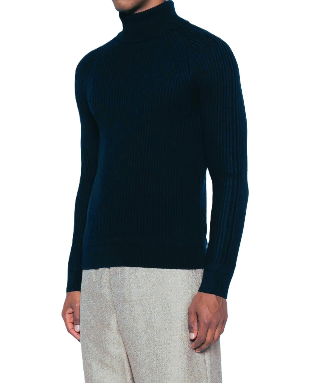 Zanone Maglione a coste con collo alto blu, lavorazione in maglia a coste, maniche raglan, maniche lunghe, orlo dritto