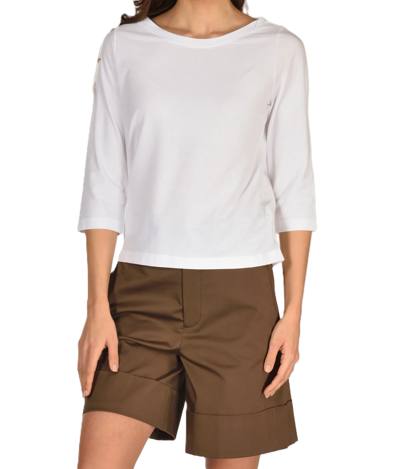 T-shirt Scollo A Barchetta, Maniche 3/4, Vestibilita' Regular, Composizione 100 Cotone, Made In Italy